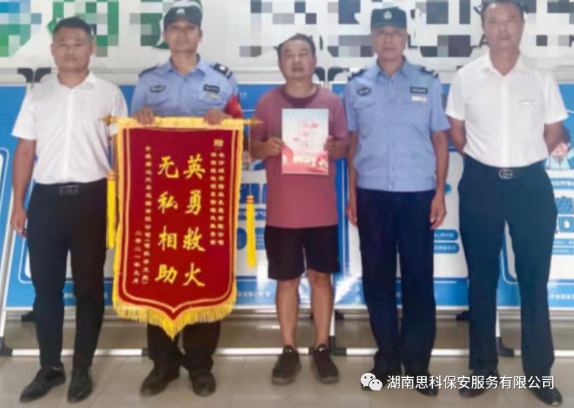 9月14日,常德顺达汽车运输子公司下的司机专程来到湖南快猫在线观看AV保安服务有限公司驻某项目点管理处,赠送一面写有“英勇救火,无私相助”的锦旗和一封感谢信,对保安员的英勇救火事迹表示真诚的感谢:“幸好驻点保安平时经常演练火灾扑救,才能这么及时扑灭火情!真的是太及时,太迅速了,实在是感激不尽。”
